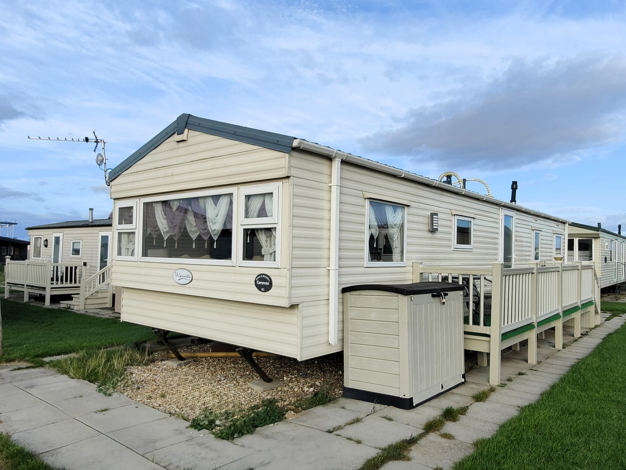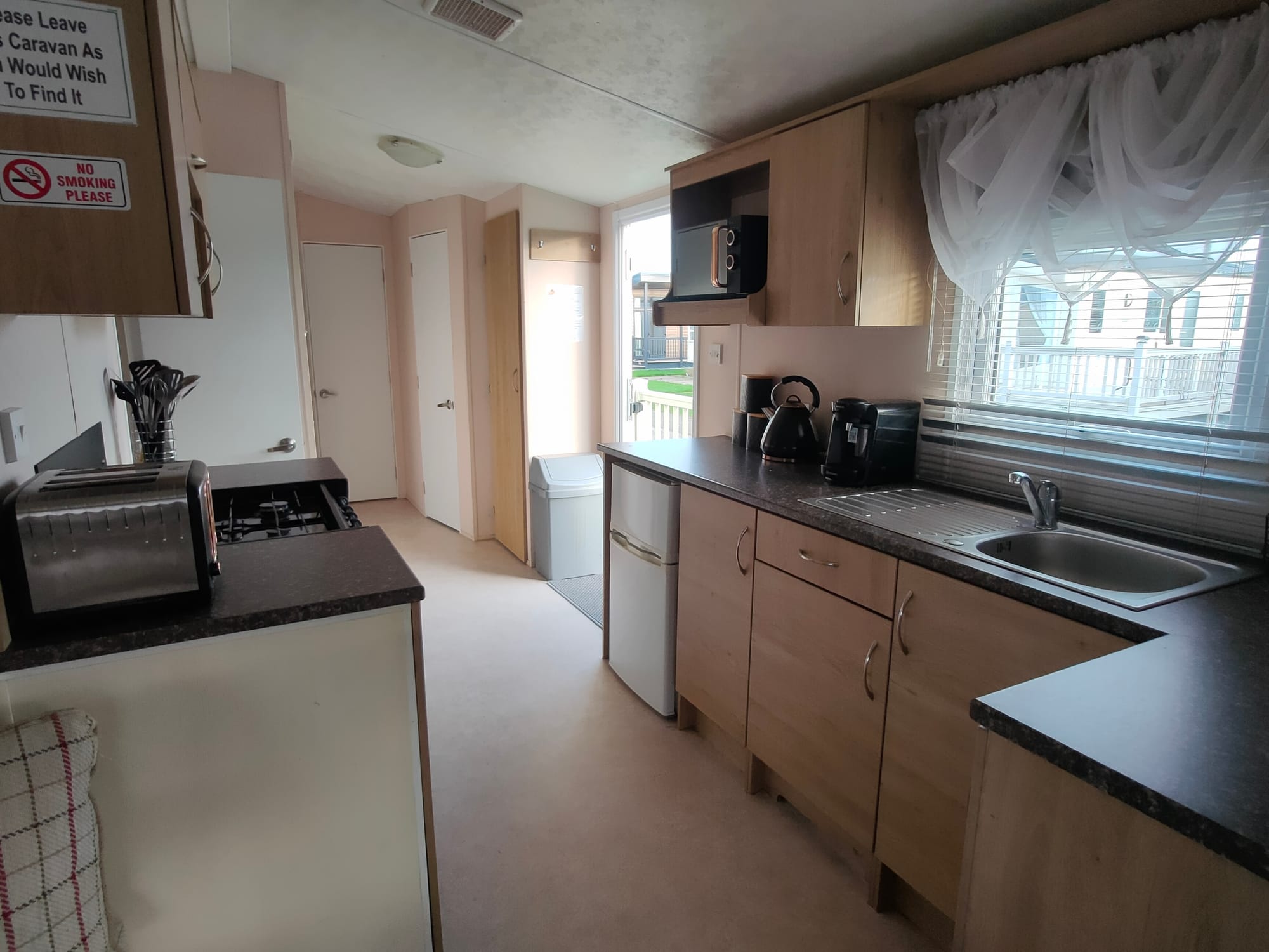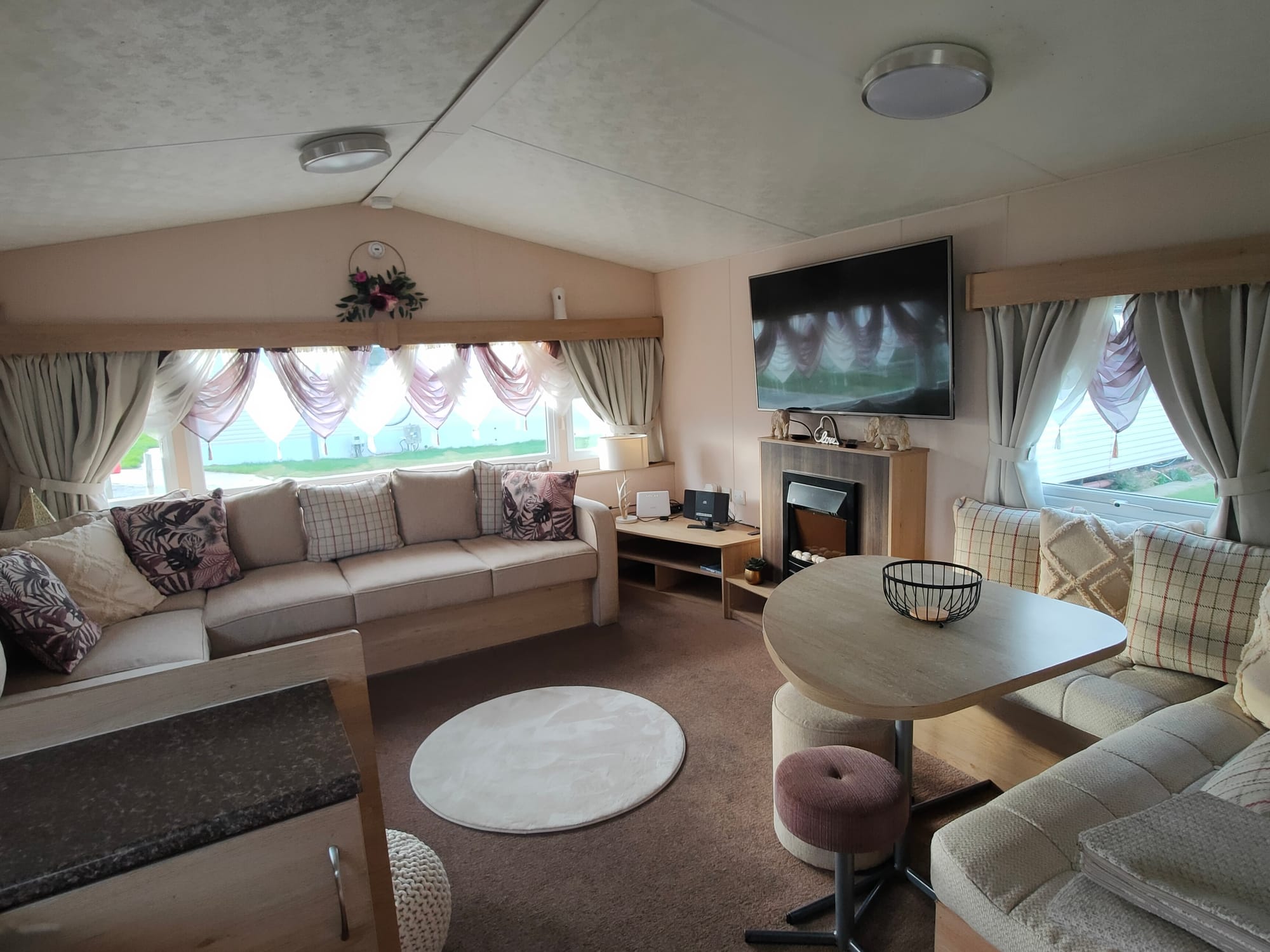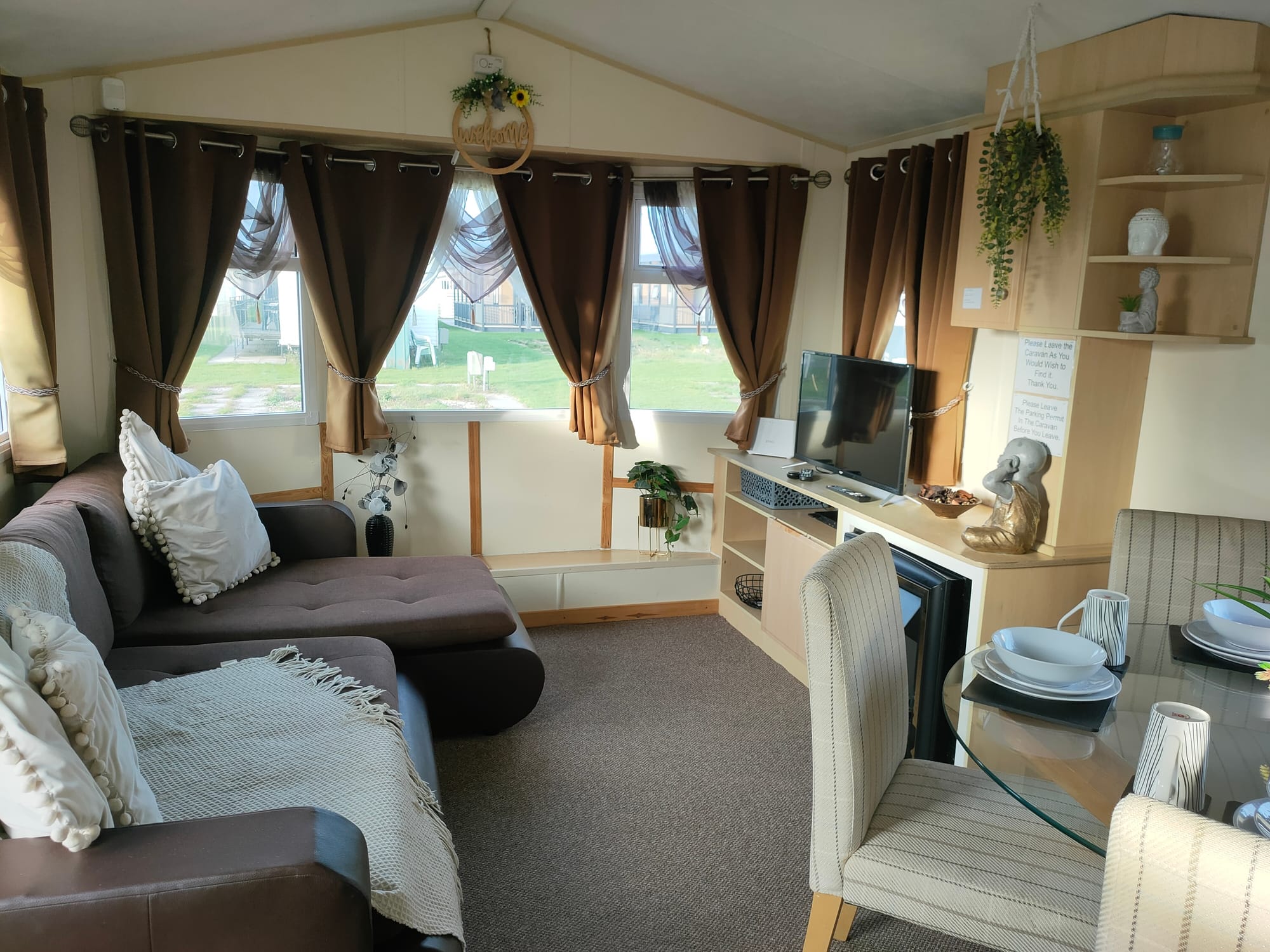 🔍 Viewing: Eastgate F3 — 🛏 Sleeps 8 | 🐾 Pet Friendly. 🛌 Bedrooms: 1 Double, 2 Twins (TV in all rooms). 🚻 Toilet: 1. 🔥 Electric Heaters in Bedrooms + Gas Fire in Living Room. 🪟 Double Glazed. ✨ Enclosed Veranda. 📶 Fast In‑Van Wi‑Fi. 🛎 Beds made for arrival.